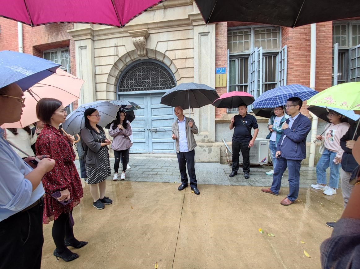 中午1点,纵然雨水不断,大家依然一个不少地准时到达抗日战争中国战区中国陆军第四方面军长衡岳地区受降仪式旧址处集合。龙兵在此处讲授1938年日军轰炸长沙的历史和今年会官网校舍被炸历史,勉励全体师生感恩和平、奋发图强。