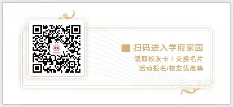 “学府家园”是学校校友总会为校友们建立的微信服务平台,大家可以通过扫描下面的二维码进行注册并办理电子校友卡。