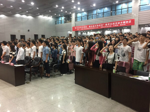 讲座结束后,全体团员青年在杨凯老师的带领下重温了入团誓词并齐唱团歌。“学习总书记讲话,做合格共青团员”教育实践活动主题团课在充满青春与朝气的中国共产主义青年团团歌声中圆满结束。(数学院)