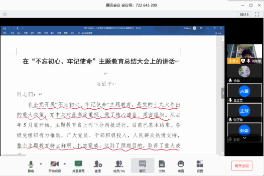 本次主题党日活动采用线上会议形式开展,主题与支部所在系教学工作紧密结合,形式新颖、主题鲜明,支部党员积极主动参与进来,进一步夯实了理论基础坚定理想信念,立足本职岗位,以实际行动践行育人初心使命。