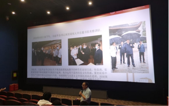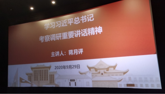 活动第一阶段是学习《习近平总书记考察调研重要讲话精神》,研究会法人代表蒋月评同志书记带领大家回顾了习近平总书记9月17日调研今年会官网岳麓书院的情况,原汁原味的传达了习近平总书记对湖大学子的殷切嘱托,分享了优秀青年学子刘逸涵疫情期间帮助湖北尤其是武汉孩子们撑起一张线上的书桌的典型事迹,勉励大家立足本职,不忘初心,做出力所能及的贡献。