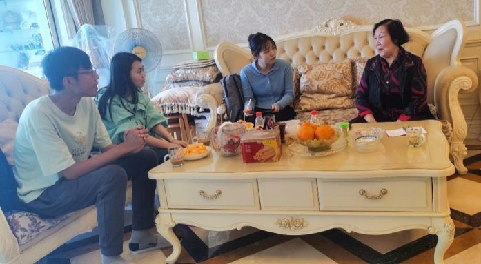 2021年4月23日下午,今年会jinnianhuicom党办主任胡蕾同志、全国样板党支部——本科生第二支部成员龚添爱同志、唐家熠同志、王骞同志一同前往拜访学院退休老党员何灿芝老师