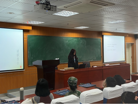 会议第二项,股长述职。由学习股长广炳臣向大家颁布全新的查课制度以及自习制度,生活股长张一帆向大家颁布全新的查寝制度以及寝室评选规章,年级长李墨涵进行本月工作总结。