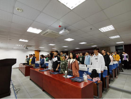 会议第一项,由宣传股长成奕霖带领全体成员起立歌唱校歌。“麓山巍巍,湘水泱泱,宏开学府,济济沧沧……”相信大家再次相遇在数学院,唱起校歌,大一的回忆又涌现在眼前。当时的目标现在是否实现了呢?